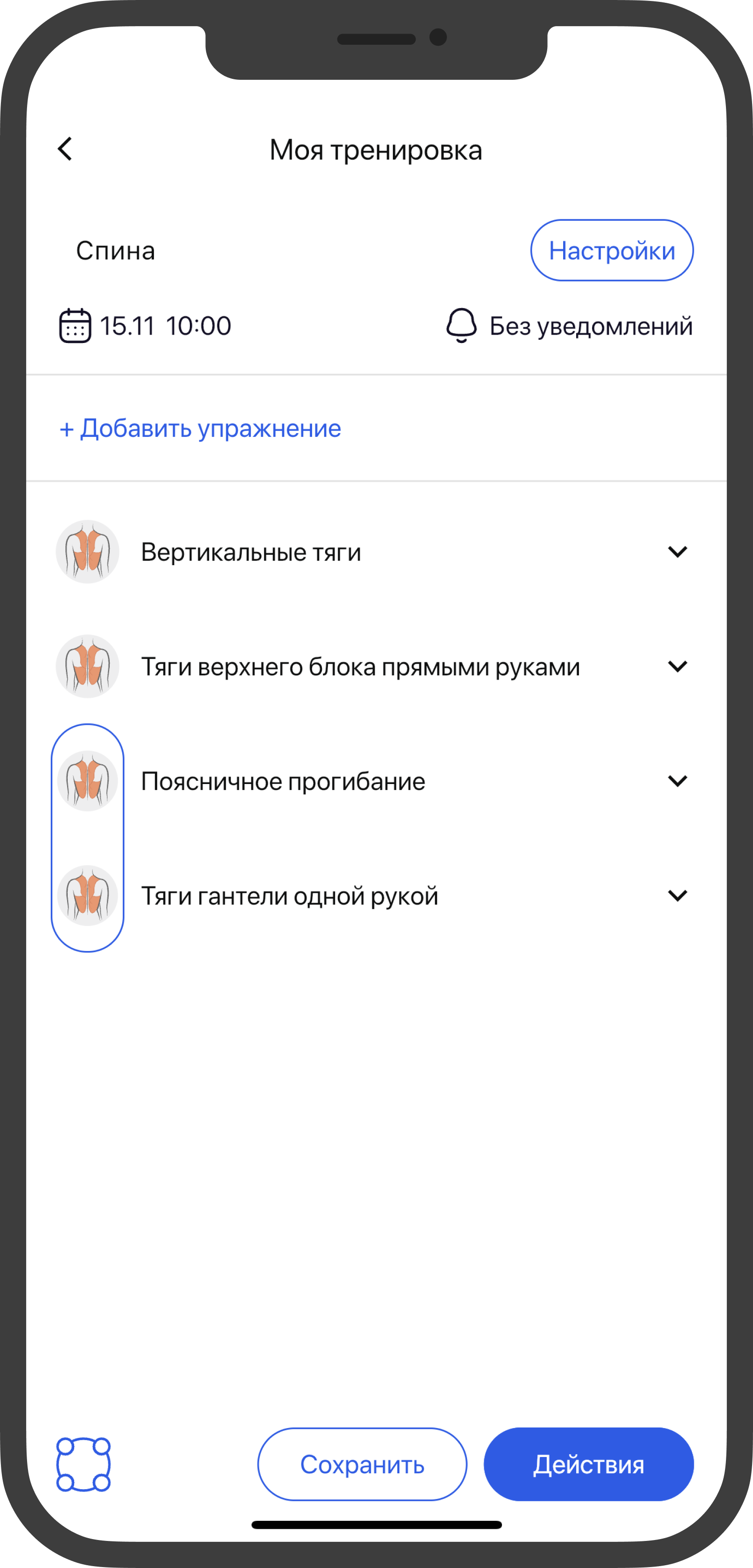 Внесите необходимые заметки и ссылки по выполнению упражнений, чтобы в зале не отвлекаться на поиск техники выполнения запланированных упражнений.